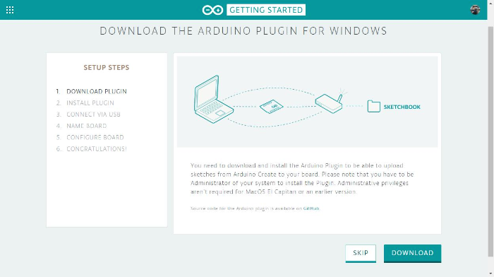 - Arduino Create Plugin 설치 (아직 설치하지 않은 경우) 이렇게하면 컴퓨터와 Arduino 보드 간의 통신이 가능해집니다.