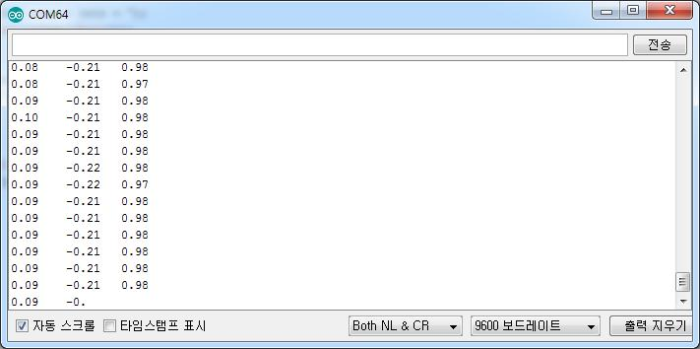 아래는 실행 결과를 보여줍니다. 위 그림은 출력 데이터를 시리얼 모니터로 본 그림입니다.