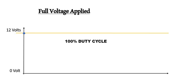 디지털 신호 인 펄스폭 변조는 회로의 전류를 지속적으로 켜고 끄는 스위치처럼 작동합니다. PWM의 두 가지 주요 요인은 마이크로 컨트롤러를 통해 두 가지 모두를 제어할 수 있는 주파수와 듀티 사이클입니다. 주파수는 PWM 신호 주기를 완료하는 속도와 그에 따라 높은 (켜기) 및 낮은 (끄기) 상태를 얼마나 빨리 전환하는지 결정합니다. duty cycle 신호가 높은 (켜짐) 상태 인 시간입니다. 한 주기를 완료하는 데 걸리는 총시간의 백분율 이 동작을 회로에 충분히 빠르게 수행하면 출력이 정전압처럼 작동하여 LED에 구동 신호로 제공됩니다. 아래 그래프는 PWM에 대한 이해를 높여줍니다.