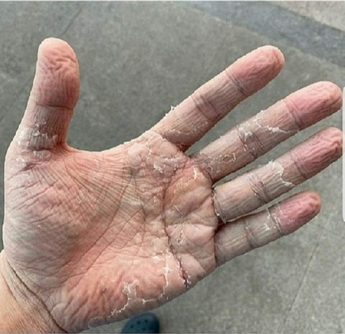 "지난 두 달 동안 장갑 끼고 일한 의료진의 손이다. 제발 이 사진 좀 보고 자신이 확진 판정을 받았다면 경거망동하지 말고 자가격리, 치료 집중하길 바란다. 본인이 확진자인 줄 알면서 집단이 모인 곳에 가는 것은 살인행위가 될 수 있음을 자각해야 한다."