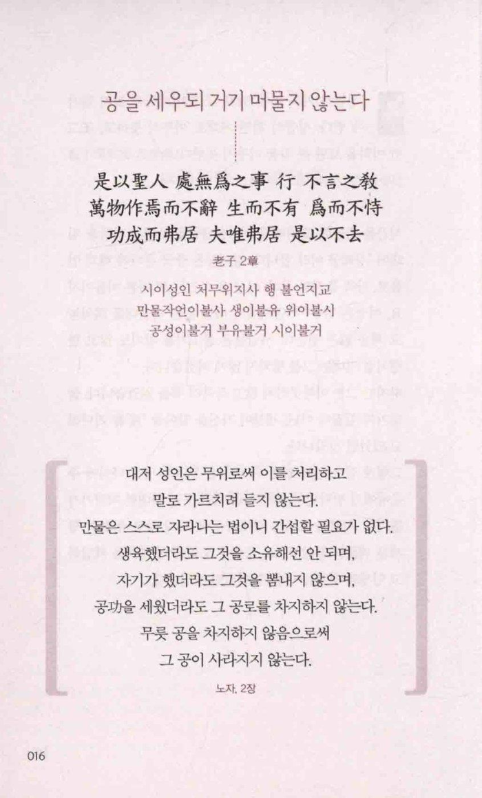 위이불시(爲而不恃) 노자에 나오는 말로 이룸을 자랑하지 말라는 뜻. 결과에 연연하지 않고 그저 마음 닿는대로 행하면 그만이라는 의미.