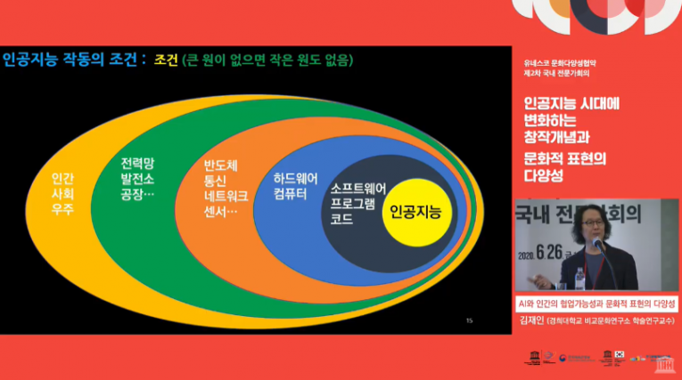 인공지능(AI) 시대를 맞아 변화하는 창작 개념과 문화적 표현의 다양성을 논의하는 ‘유네스코 문화다양성 협약 전문가 토론회’가 열렸다. 예술의 정의가 과거 낭만주의 시대 개념으로 제약된 상황에서 의식 없이 창작물을 만드는 AI작가의 등장을 어떻게 봐야 할지에 대해 다양한 관점에서 논의가 벌어졌다.