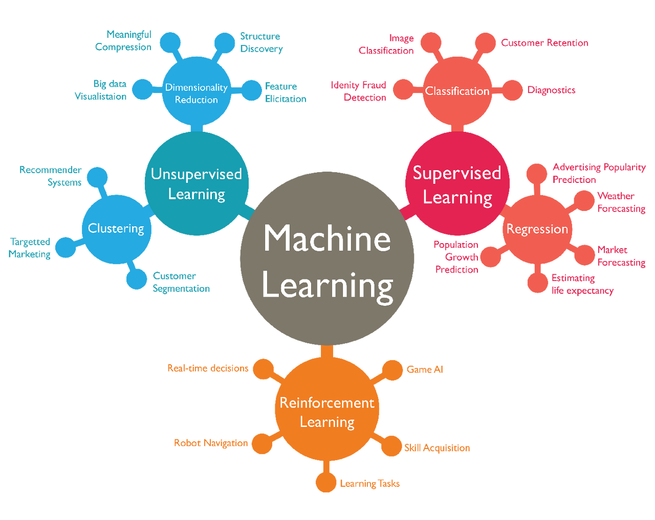 머신러닝에서는 크게 지도 학습(Supervised Learning), 비지도 학습(Unsupervised Learning), 강화 학습(Reinforcement Learning)으로 나눌 수 있습니다. 지도 학습과 비지도 학습의 유형에 대해 간단하게 살펴보겠습니다.