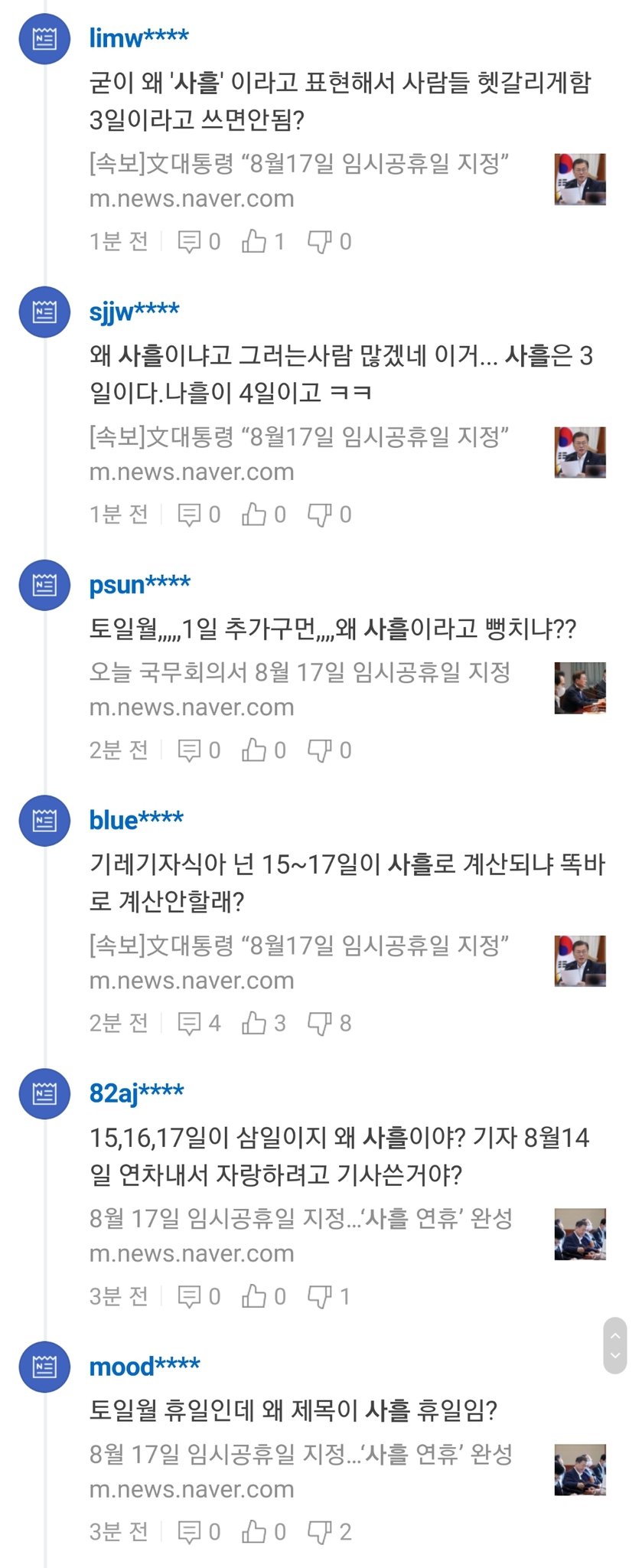 요즘은 그렇다고. 3일 이라고 안 쓰고 왜?
