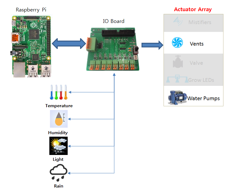 Greenhouse 내부 센서를 통해 획득한 데이터를 바탕으로 환경 자동제어 기능을 수행한다.