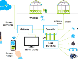 사람이 상주하지 않는 비닐하우스에 설치된 Gateway System은 Greenhouse(우리말 비닐하우스) 상단, 하단, 출입구 등에 설치된 센서 -온도.습도센서, 조도센서, 강우 센서- 상태를 실시간 모니터링하고, 여러 개의 CCTV 카메라를 통해 실시간으로 영상을 제공하며, 원격지 모바일 단말기를 통해 Greenhouse에 설치된 액츄에이터 -워터펌프, FAN- 를 제어할 수 있다. Greenhouse 원격 모니터링 및 관리 시스템 개념도를 아래에 나타내었다.