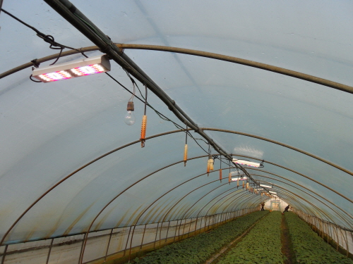 아래는 현재 사용되는 LED 조명을 그린하우스에 적용된 현장의 참고사진이다.