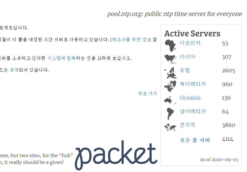 - 글로벌; www.pool.ntp.org/zone/@ 아시아; www.pool.ntp.org/zone/asia