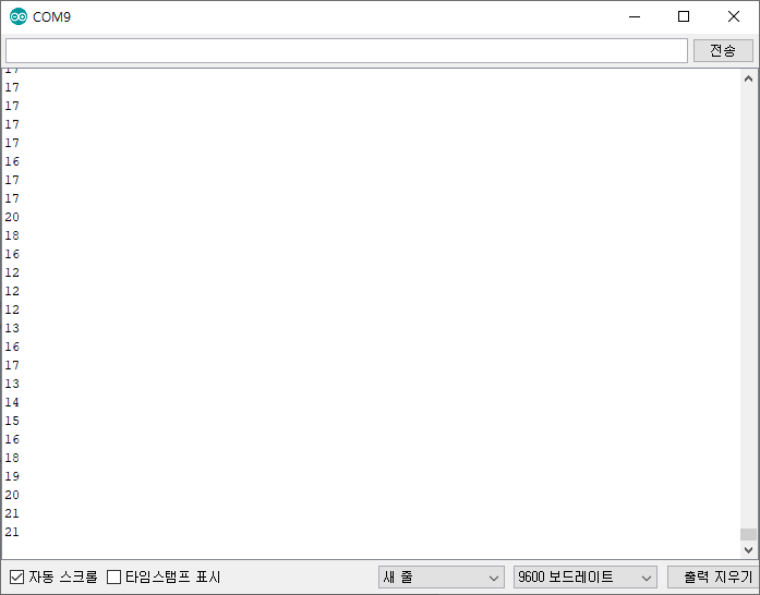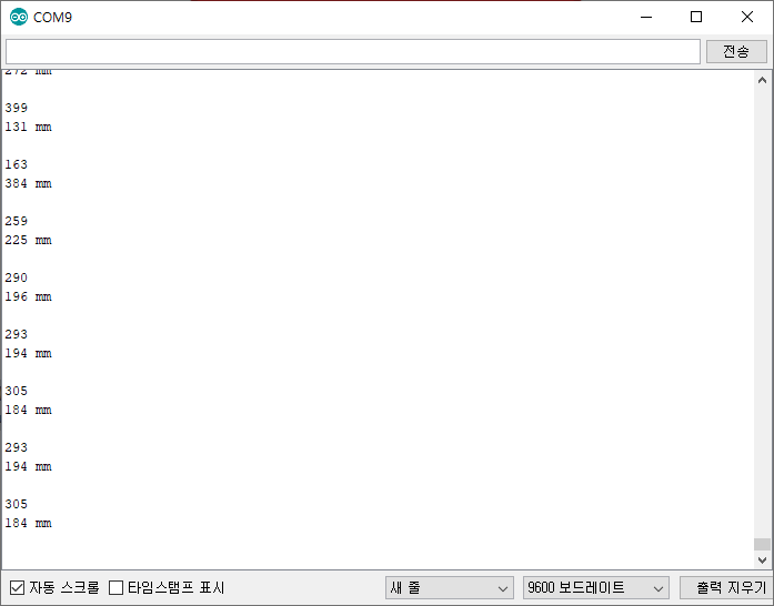 Serial.println(distance); //센서 값을 출력합니다.