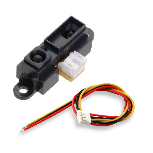 Sharp GP2Y0A21YK 거리 측정 센서입니다. 거리에 따라 아날로그 전압을 출력하며, 출력되는 전압을 바탕으로 거리를 측정할 수 있습니다.