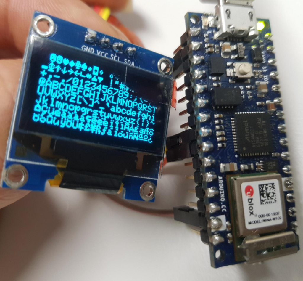 방금전에 아두이노 우노 보드에서 0.96 ssd1306 i2c OLED를 테스트 하였다. 그대로 nano 33 IoT보드에서 테스트를 진행한다. 연결은 아래와 같다. nano 33 IoT 보드의 Pin map을 참고하여 정확히 연결한다.