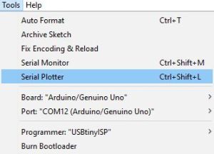 도구 메뉴로 이동하여 직렬 플로터 옵션을 선택합니다. 이렇게하면 데이터 그래프를 볼 수 있습니다.