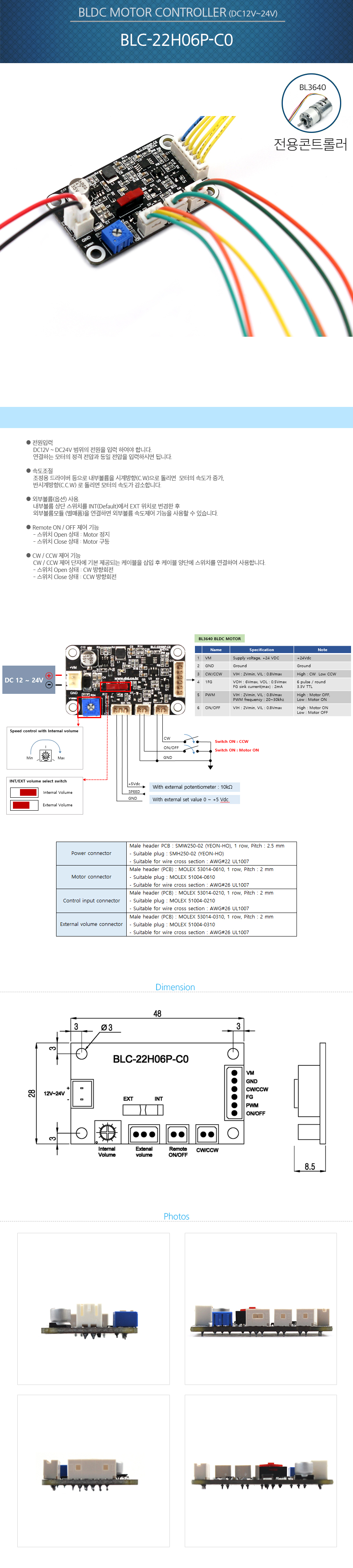 BLDC모터 컨트롤러 BLC-22H06P-C0 BL3640 전용콘트롤러