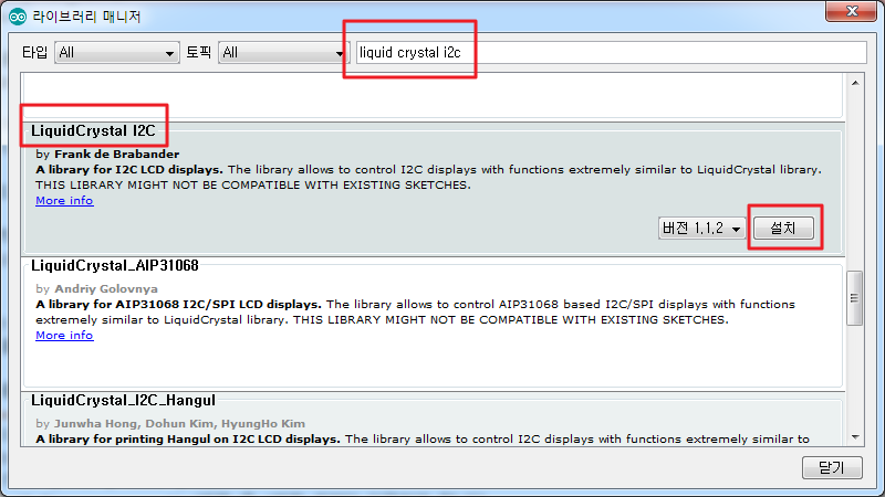 우선 라이브러리를 아래 이미지와 마찬가지로 검색하여 설치해 줍니다.