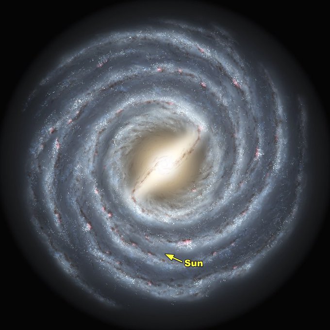 Fun fact: It’s takes ~250 million years for our solar system to orbit the Milky Way galaxy — and it’s only done this about 20 times.