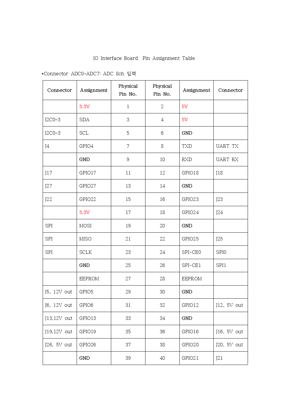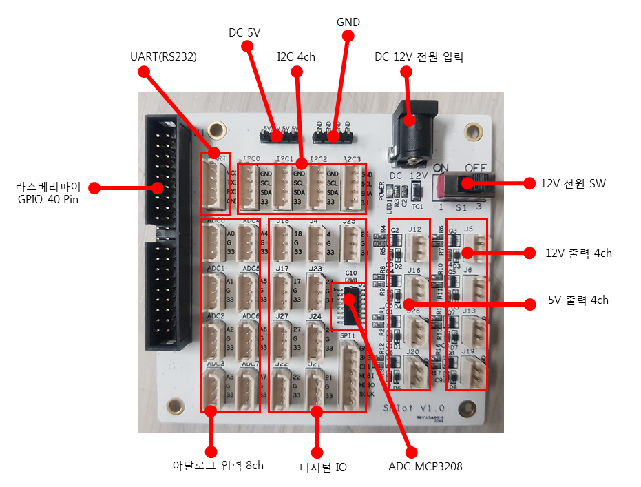 - ADC 커넥터 연결 번호, GPIO 센서 입출력 번호, 액츄에이터 제어 출력 커넥터 번호를 GPIO 번호로 통일