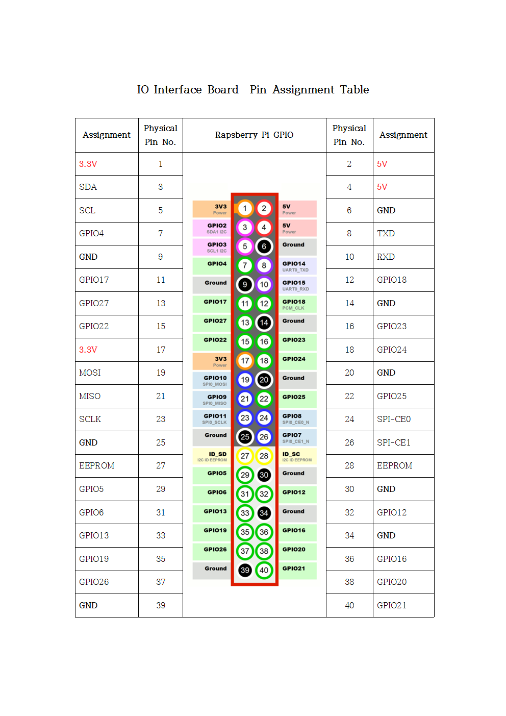 [라즈베리파이 40 GPIO Pin 할당 표]