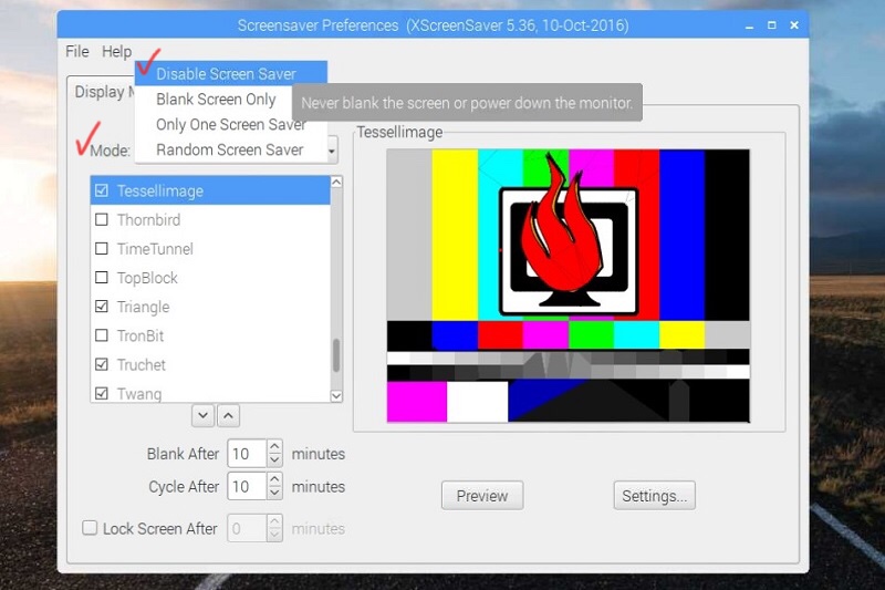 라즈베리파이는 기본으로 스크린 세이버가 설정되어 있습니다. 일단 스크린 세이버를 설치하고, 윈도우 환경에서 스크린 세이버를 원하는 옵션으로 설정 변경하여 모니터가 꺼지는 것을 방지하는 방법으로 해결하는 방법을 설명합니다.