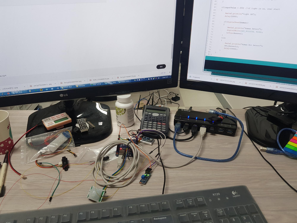 전체 소스코드는 아래와 같다. 연결하지 않은 온도 습도 센서와 실내 소리를 센싱하는 사운드 센서는 차후 버전에서 구현하기로 한다. 다 귀찮다.