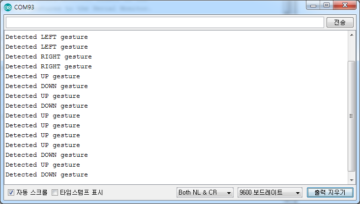 int gesture = APDS.readGesture(); // 인식된 제스처를 gesture 변수에 저장