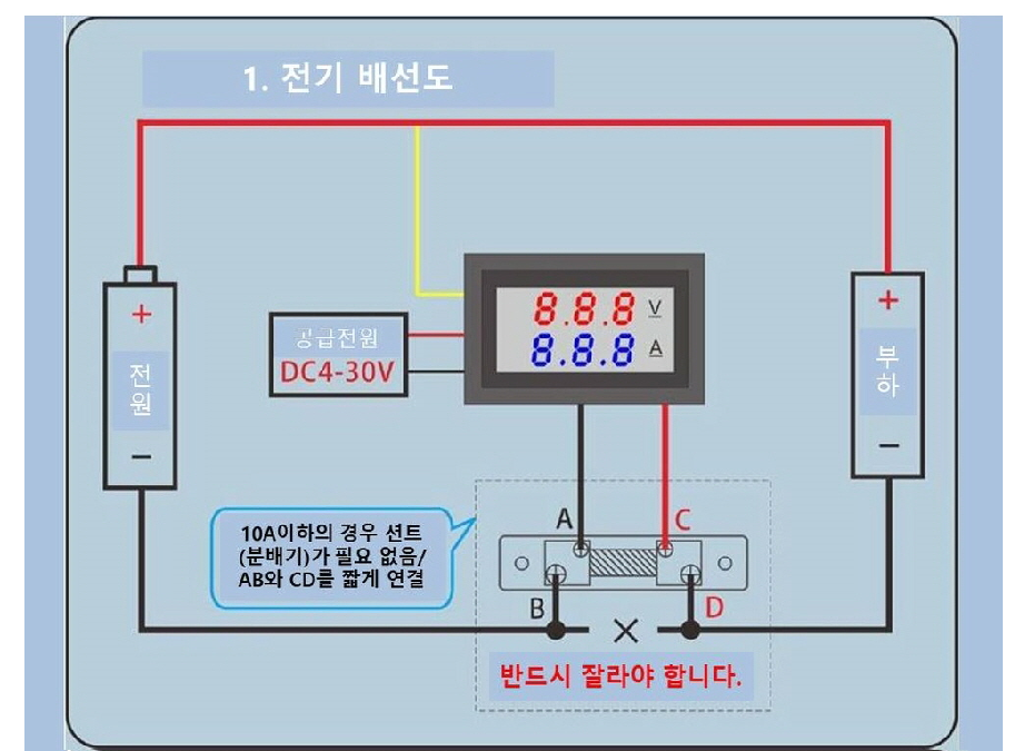 액체 정량 공급기 펌프의 커런트를 검사해야 한다. 좀 많이 나올 줄 알았더니 0.6A 정도 한다. 아래는 전류 판넬 미터를 구매해 연결도를 다운 받아 올린다. 아래 diagram 1에 보면 4~30V 파워 서플라이 하나를 사용한다면 다이어그램 2 처럼 연결하라고 하니, 두 번째 그림인 Wiring Diagram 2를 따른다.