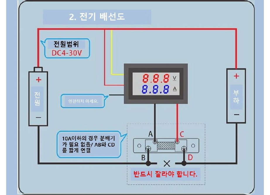 액체 정량 공급기 펌프의 커런트를 검사해야 한다. 좀 많이 나올 줄 알았더니 0.6A 정도 한다. 아래는 전류 판넬 미터를 구매해 연결도를 다운 받아 올린다. 아래 diagram 1에 보면 4~30V 파워 서플라이 하나를 사용한다면 다이어그램 2 처럼 연결하라고 하니, 두 번째 그림인 Wiring Diagram 2를 따른다.