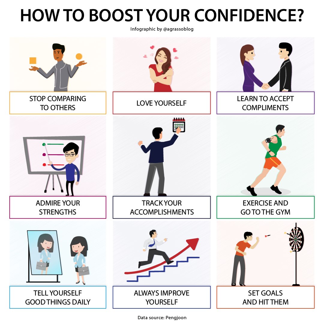 자신감은 우리에게 많은 삶의 어려움을 극복할 수 있는 충분한 에너지를 줍니다. 자기중심적이지 않으면서 우리는 자신을 더 많이 믿고 우리 자신과 다른 사람들에게 이익이 되도록 우리의 자질과 성과를 높일 수 있습니다.