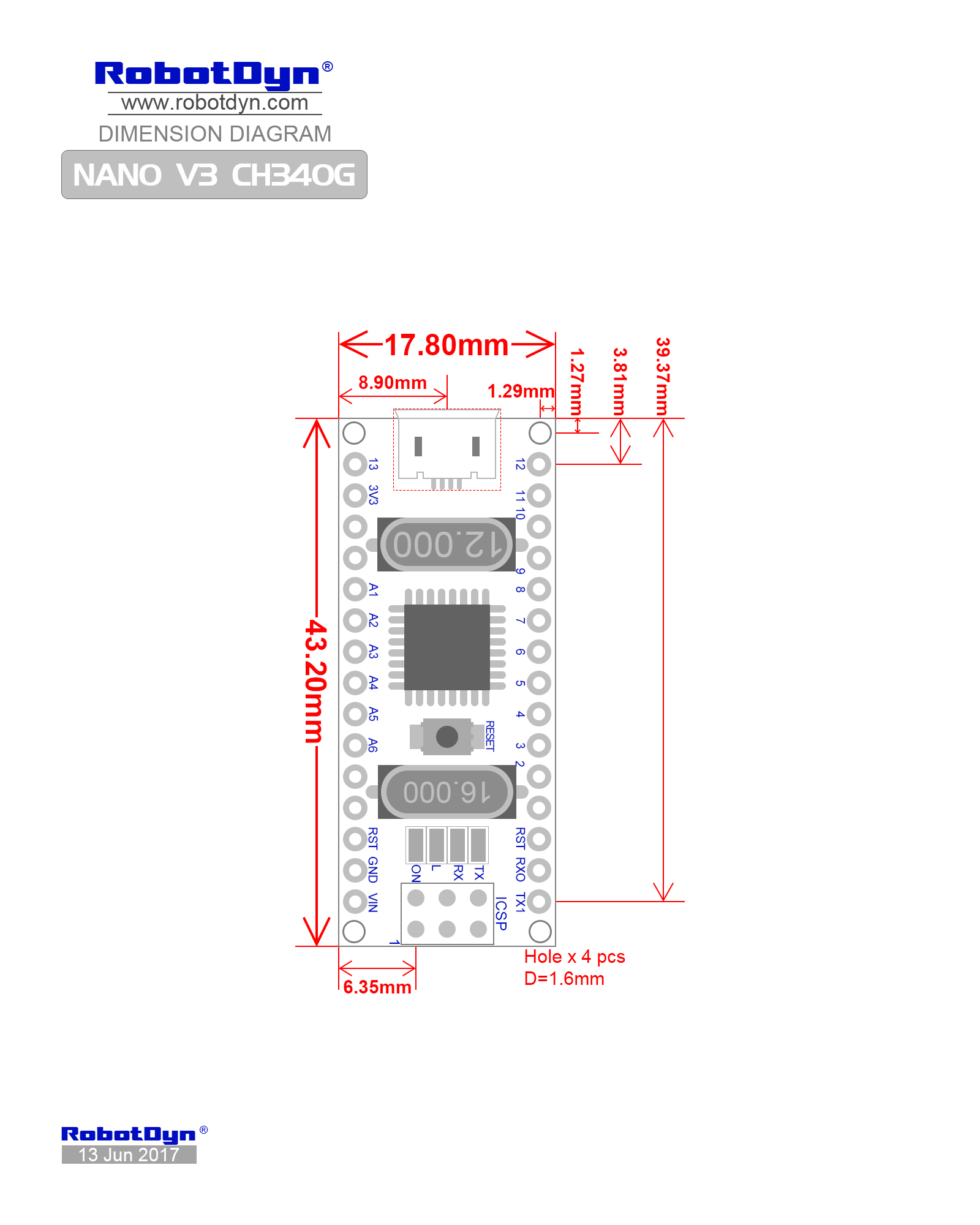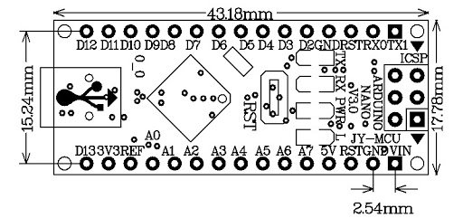 그러니까 회로 구성할 때 PCB 위에 핀 소켓을 박고 그 위에 아두이노 나노 핀 헤더를 끼우기 위해 사이즈가 필요해서 찾았다.