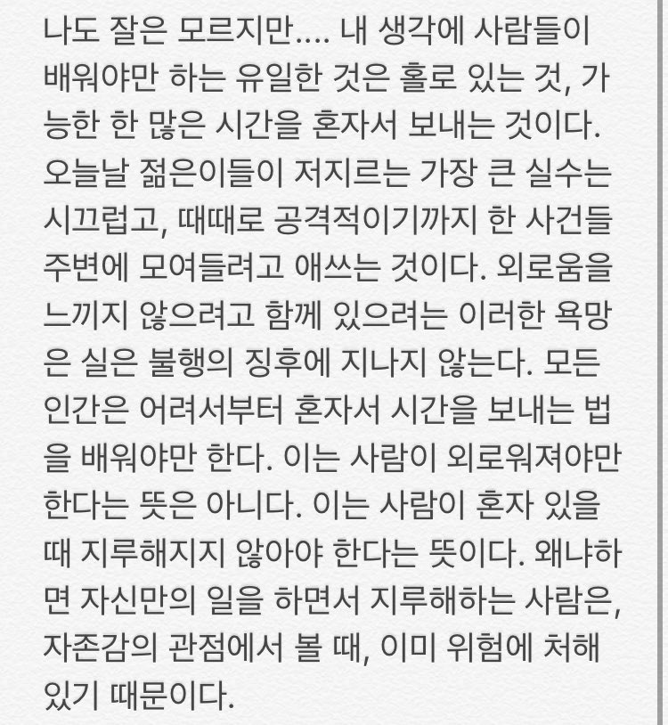 인간은 어려서부터 혼자서 시간을 보내는 법을 배워야만 한다.