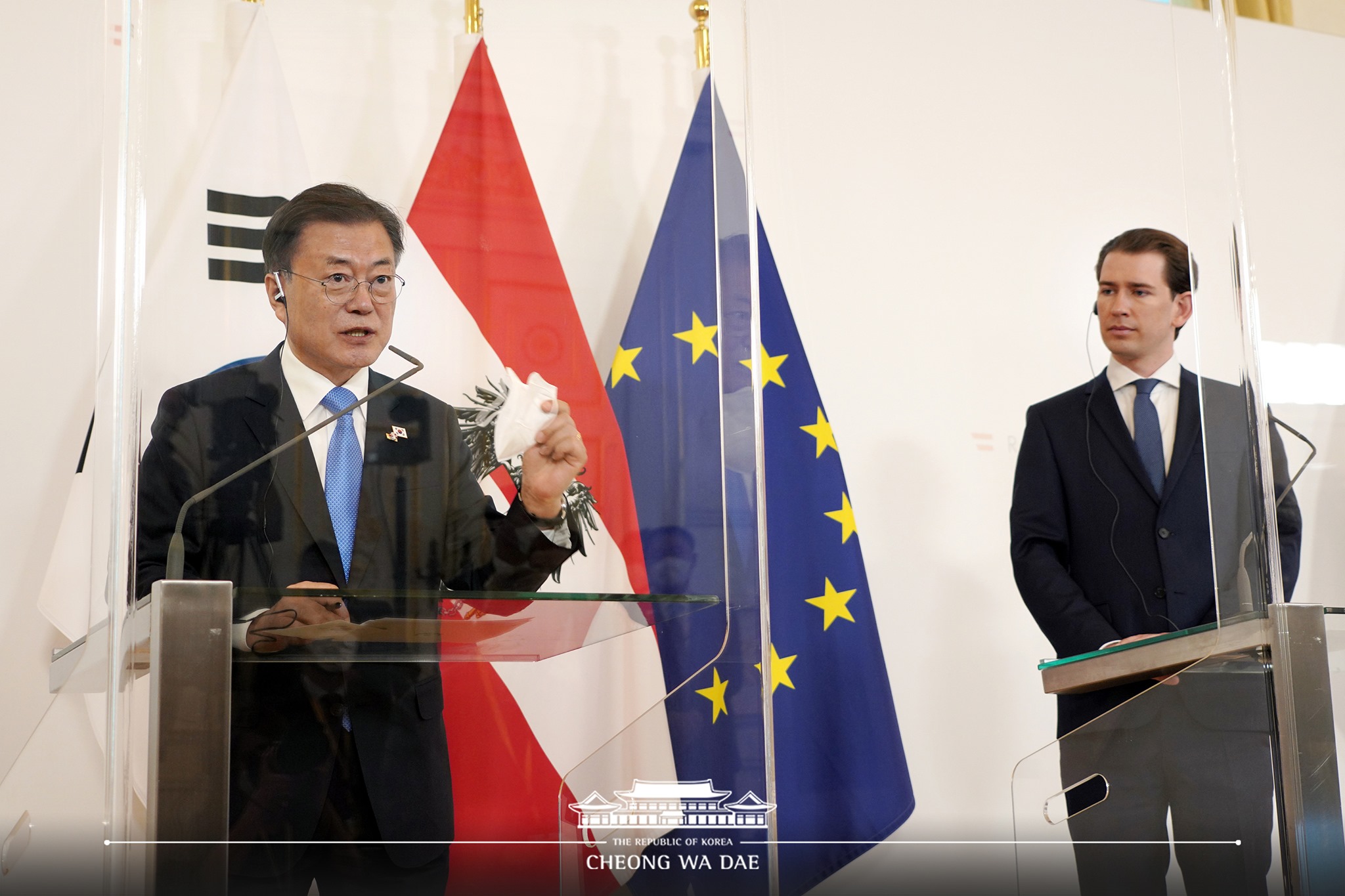 수교 129년 만에 한국 대통령으로서는 처음 오스트리아를 국빈 방문한 문재인 대통령은 14일(현지시각) 세바스티안 쿠르츠 오스트리아 총리와 회담을 갖고 양국의 관계를 ‘전략적 동반자’ 관계로 격상하기로 했습니다.