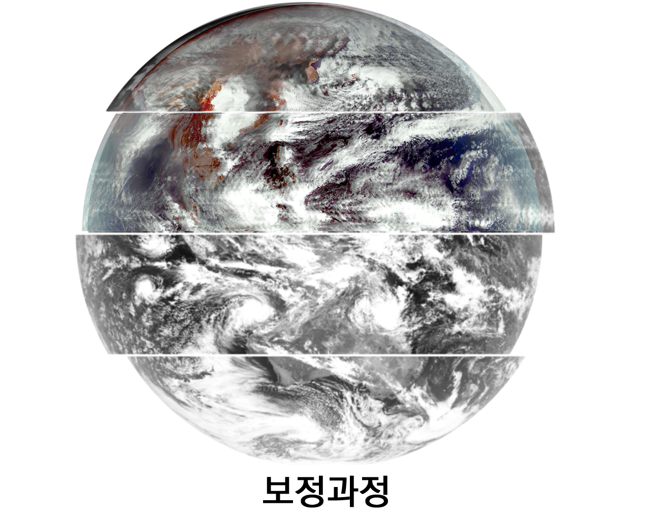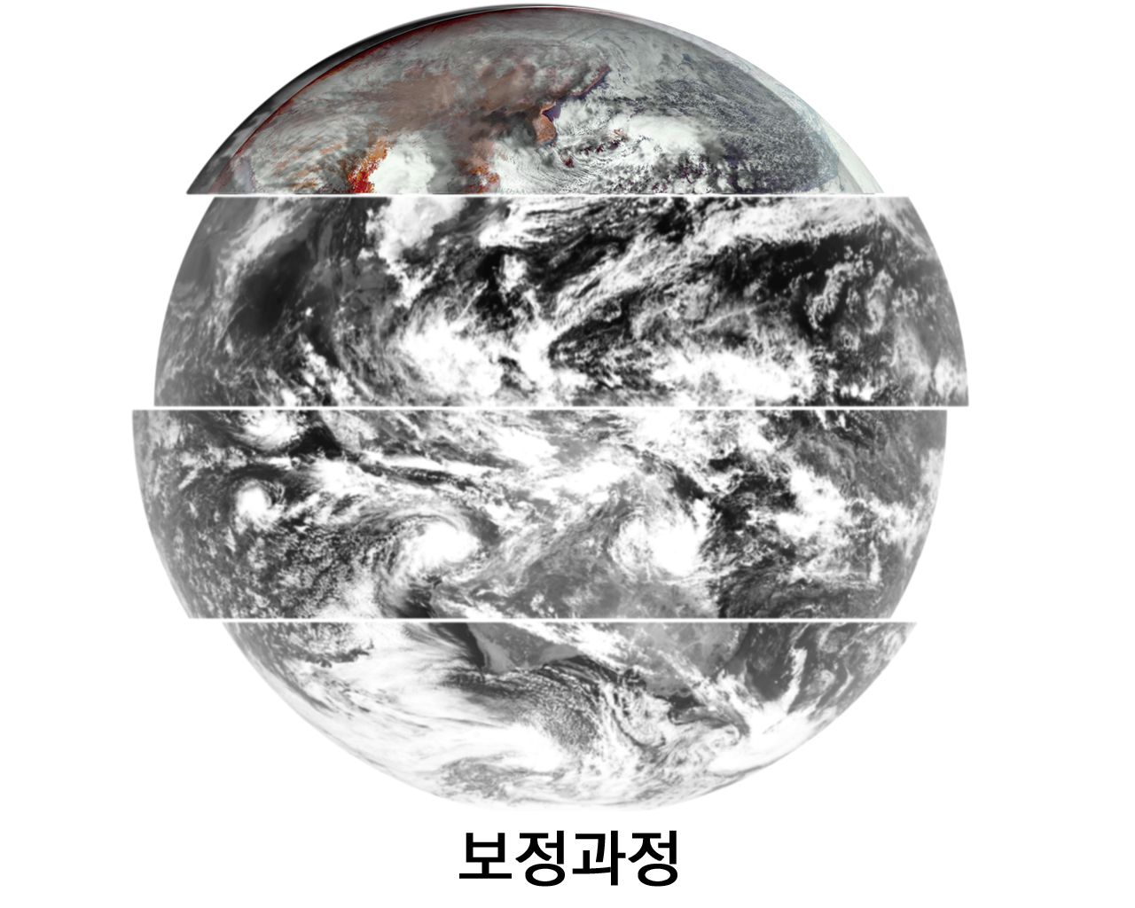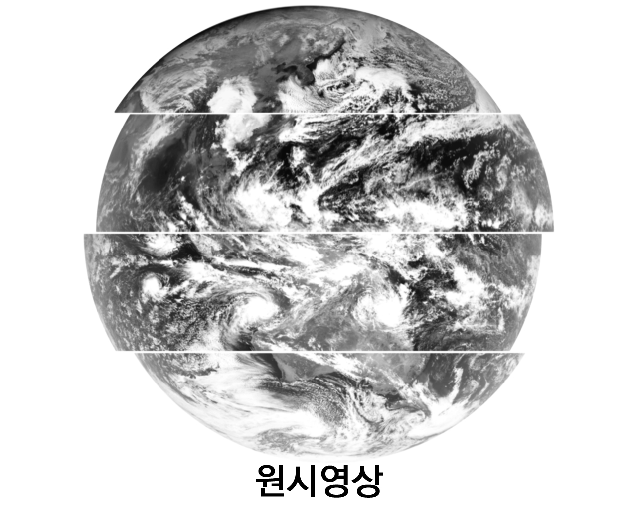 아래는 처음 원시 이미지, 보정 이미지, 대국민서비스 이미지를 알기 쉽게 변환 이미지를 보여준다.