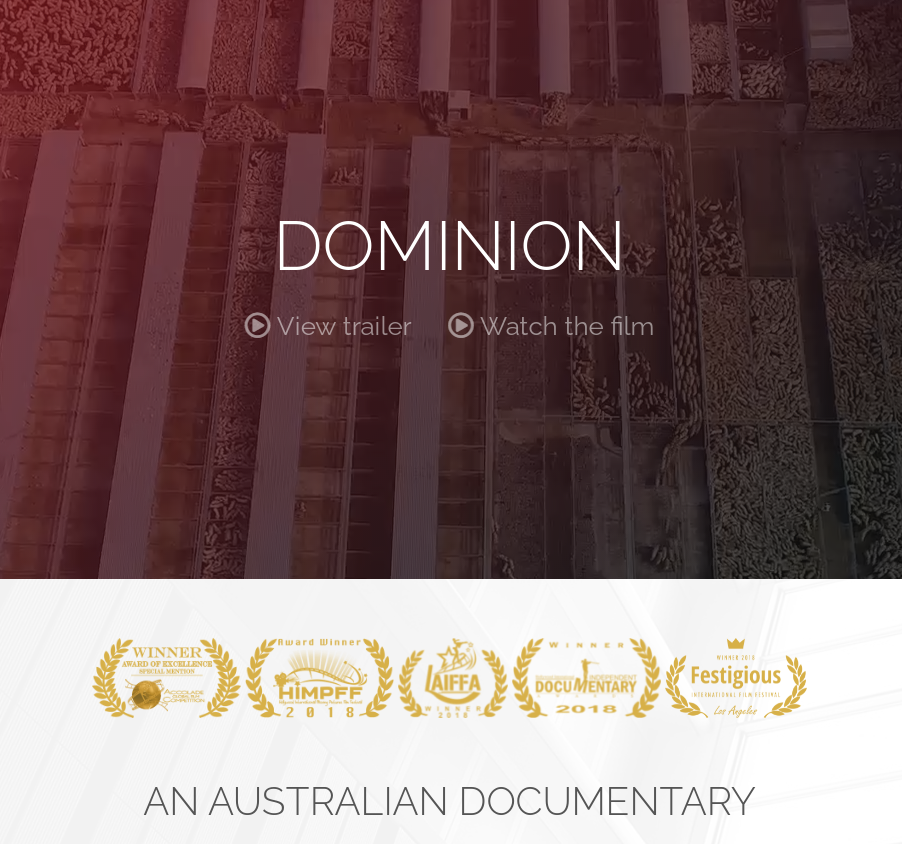 다큐멘터리 영화 도미니언 (Dominion 2018)은 보는 내내 불편함을 준다. 공장식 축산 시스템과 전혀 상관없이 지내는 내가 식육을 전제로 길러지는 동물들에게 행해지는 폭력의 가장 중요한 공범이고, 시스템에 대한 암묵적 동의, 의도적 망각, 침묵, 무시를 일삼으며 그렇게 생산된 '고기를 맛있게 먹는 나'라는 사실이 불편했다. 영화는 호아킨 피닉스, 루니 마라, 시아 등 내레이터들의 해설을 곁들여 호주에서 사육하고 도살하는 돼지, 닭, 오리, 칠면조, 소, 양, 염소, 말, 여우, 밍크 등 가축들의 생애(자연적 수명보다 한참 짧은)를 압축해 보여준다.