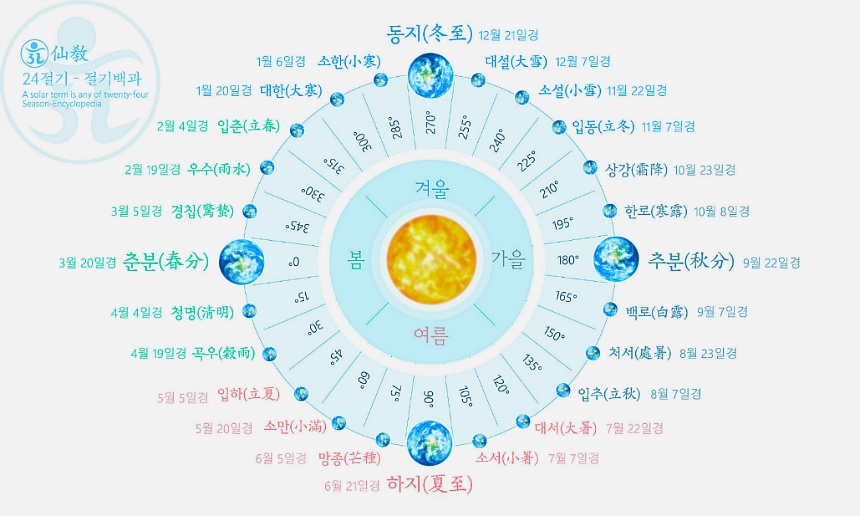 절기(節氣)는 태양의 황도(黃道)상 위치에 따른 계절적 구분.