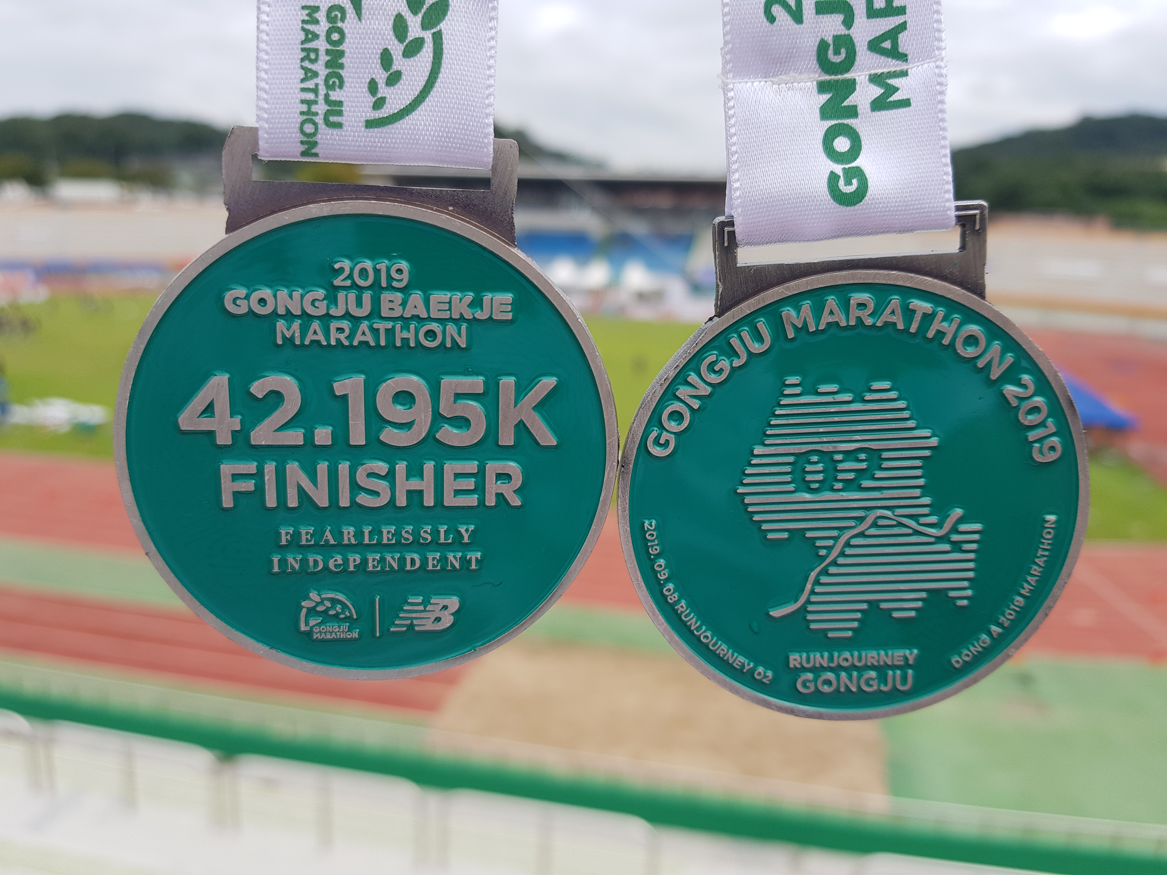 24절기 기준으로 입추와 말복, 처서가 지나고 가을 전국 단위의 마라톤 대회인 춘천마라톤과 중앙 마라톤을 대비해 마지막 장거리 달리기 대회인 공주 백제 마라톤을 달립니다. 일 년 중 러너에게 힘들기로 악명(?) 높은 대회는 서울 대공원 동물원 입구부터 동물원 끝까지 왕복 7km를 미친 듯이 6번 왕복하는 공원사랑 혹서기 마라톤과 그늘도 없고 경사로도 없고 오로지 금강을 따라 정처 없이 아스팔트를 달리는 공주 백제 마라톤입니다. 모두가 풀코스(42.195킬로미터)를 신청한 12명의 마라톤 전사가 새벽 6시 남부터미널 공주행 버스에 올라 출발합니다. 익숙하게 김밥을 나눠먹고 잠깐 눈을 붙이면 터미널에 도착합니다. 셔틀버스를 타고 공주 시민 운동장에 도착할 때까지는 그리 뜨겁지는 않습니다.