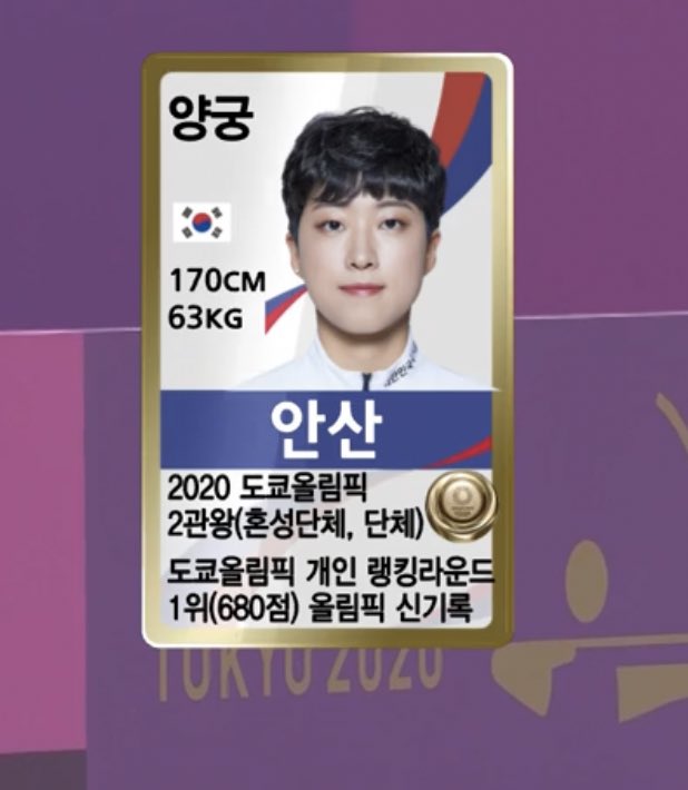 올림픽 양궁 금메달 3관왕 안산 선수가 3관왕을 차지하고 난 뒤 인터뷰에서, "한국 음식만 먹을 거고요. 3일 동안 잠만 잘 거예요."
