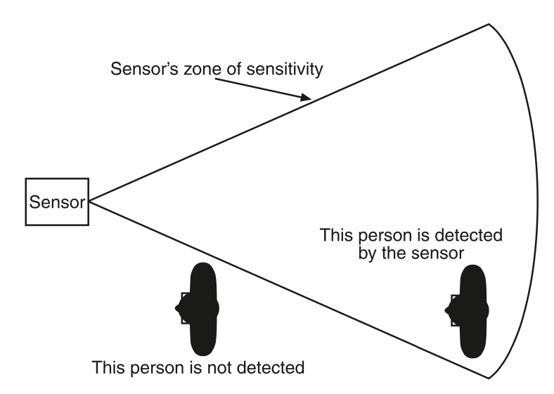 모든 거리 센서는 신호를 보내고 특정 감지 시야에서 응답을 수신합니다. 그림 9는 거리 센서의 일반적인 시야를 보여줍니다. 필드는 원뿔 모양의 센서에서 이동합니다. 센서에 가장 가까이 있는 것은 작고, 센서로부터의 거리가 멀어질수록 넓어집니다. 시야에서 가장 가까운 물체가 감지된 물체입니다. 시야 밖에 서 있는 사람은 센서로 감지할 수 없습니다.