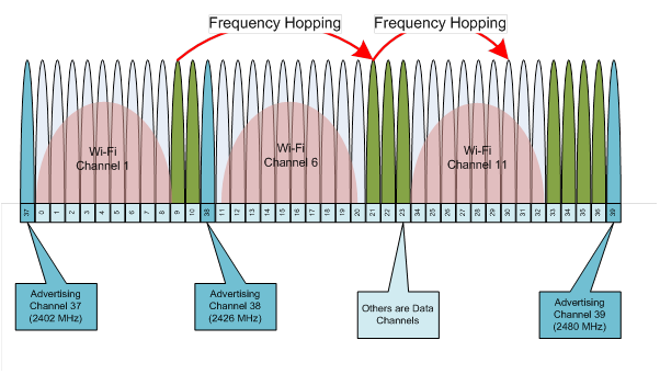 반면, 클래식 블루투스에서는 데이터 전송이 진행되지 않아도 연결이 항상 켜져 있습니다. 또한 Classic Bluetooth는 79개의 데이터 채널(1MHz 채널 대역폭)을 지원하는 반면 BLE는 2MHz 채널 대역폭(클래식 Bluetooth의 두 배)으로 40개 채널을 지원합니다.