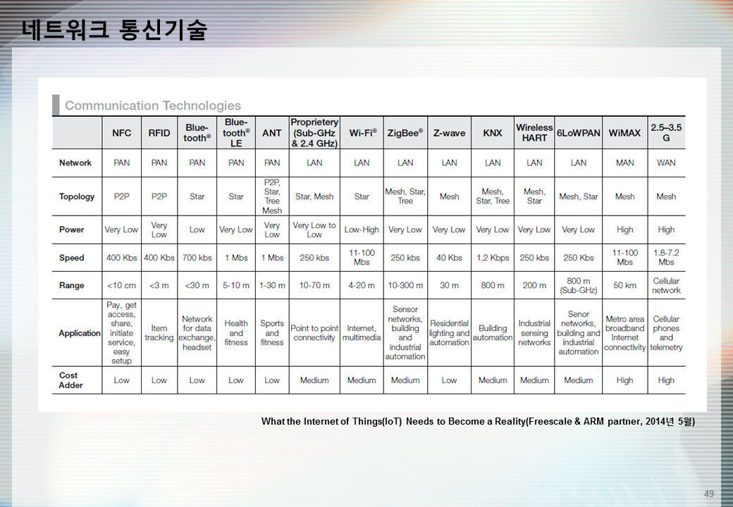 통신기술에 대한 비교 표를 참고하세요.