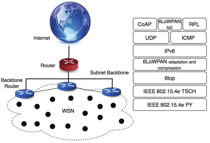 IETF에서 개발한 6TiSCH는 802.15.4 MAC 계층 프로토콜용 IPv6 표준입니다. 이 표준은 IPv6 주소가 IEEE 802.15.4e MAC 계층의 TSCH(Time-Slotted Channel Hopping) 모드를 통과하도록 허용하므로 IPv6 적응 계층이 산업 자동화 및 LLN(저전력 손실 네트워크)에 사용될 수 있습니다.