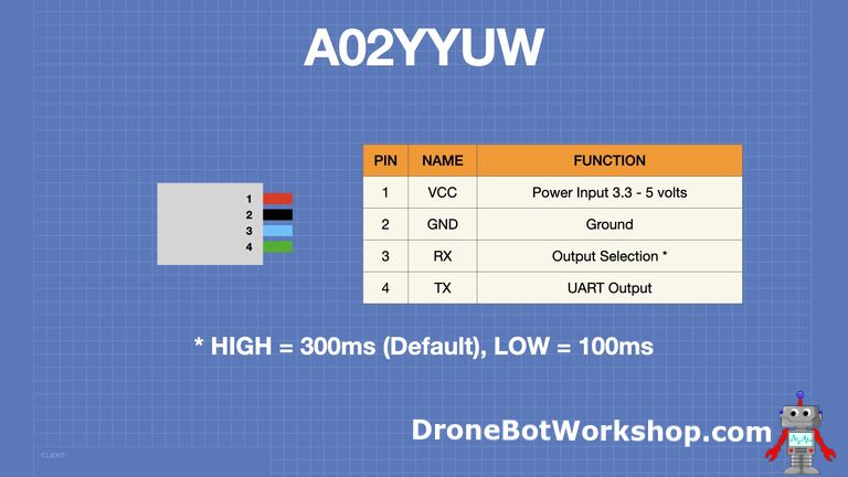 Also works with A02YYUW Ultrasonic Sensor