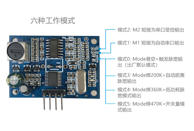 Mode 0 is default mode with no jumpers or resistors (emulates HC-SR04)