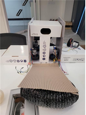 아래 그림은 야구 피칭머신을 참고하여 가지고 있던 장비들로 구현해본 틀이다. 공을 쏴줌으로써 반려동물이 혼자 놀 수 있고 반려동물이 작품에 공을 넣는다면 자동적으로 공을 쏴주는 방도로 개발하려고 했고, 반려동물이 공을 다시 물어와 넣는다면 간식과 주인의 목소리가 녹음된 음성을 들려주도록 개발했다.