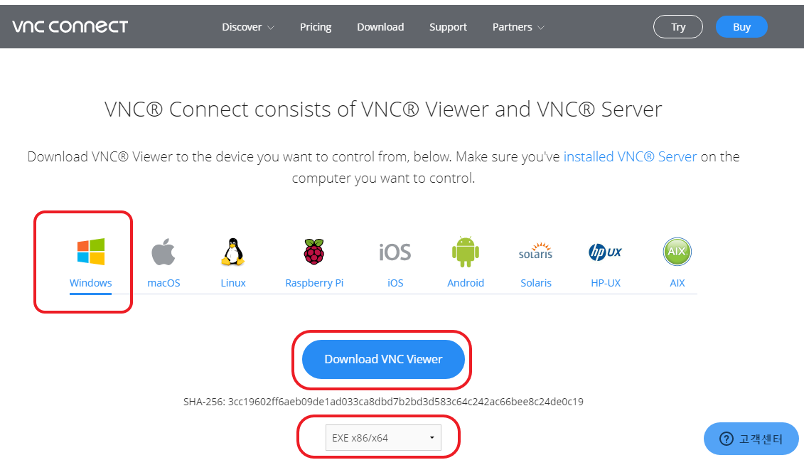 데스크 톱 컴퓨터에 VNC 접속프로그램을 설치합니다. RealVNC 사이트에 접속하여 해당 운영체제에 맞는 VNC 뷰어를 다운로드하여 설치합니다.
