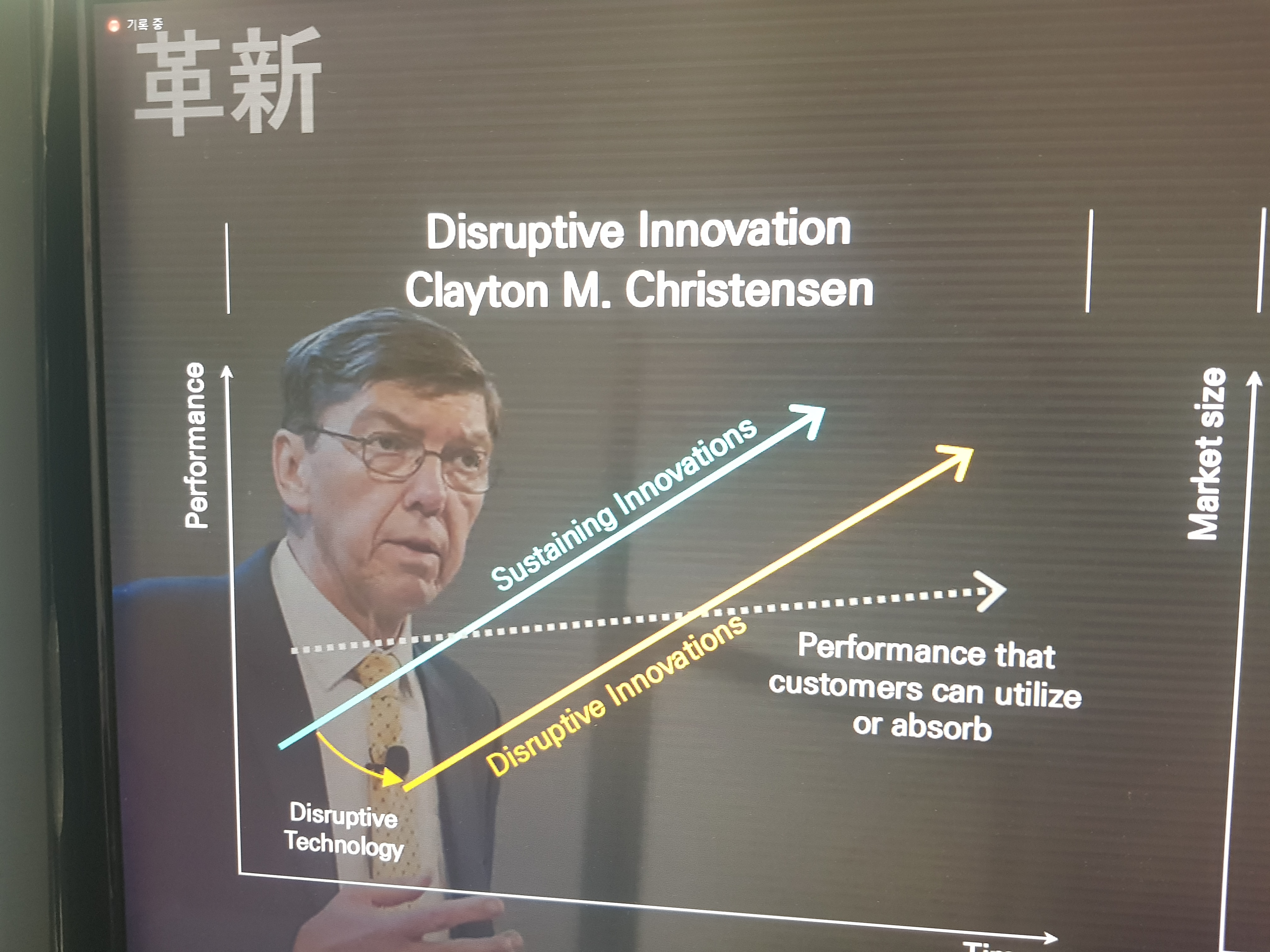 파괴적 혁신 기술: 최첨단 기술은 아니지만 발전속도가 빠르고 저가의 힘으로 시장을 와해시킴.