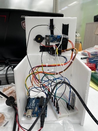 | 상단부 - 사용자의 이용 가능 여부를 측정 및 판단 후 부저 및 LED로 알려주는 상단부 | ![]() |