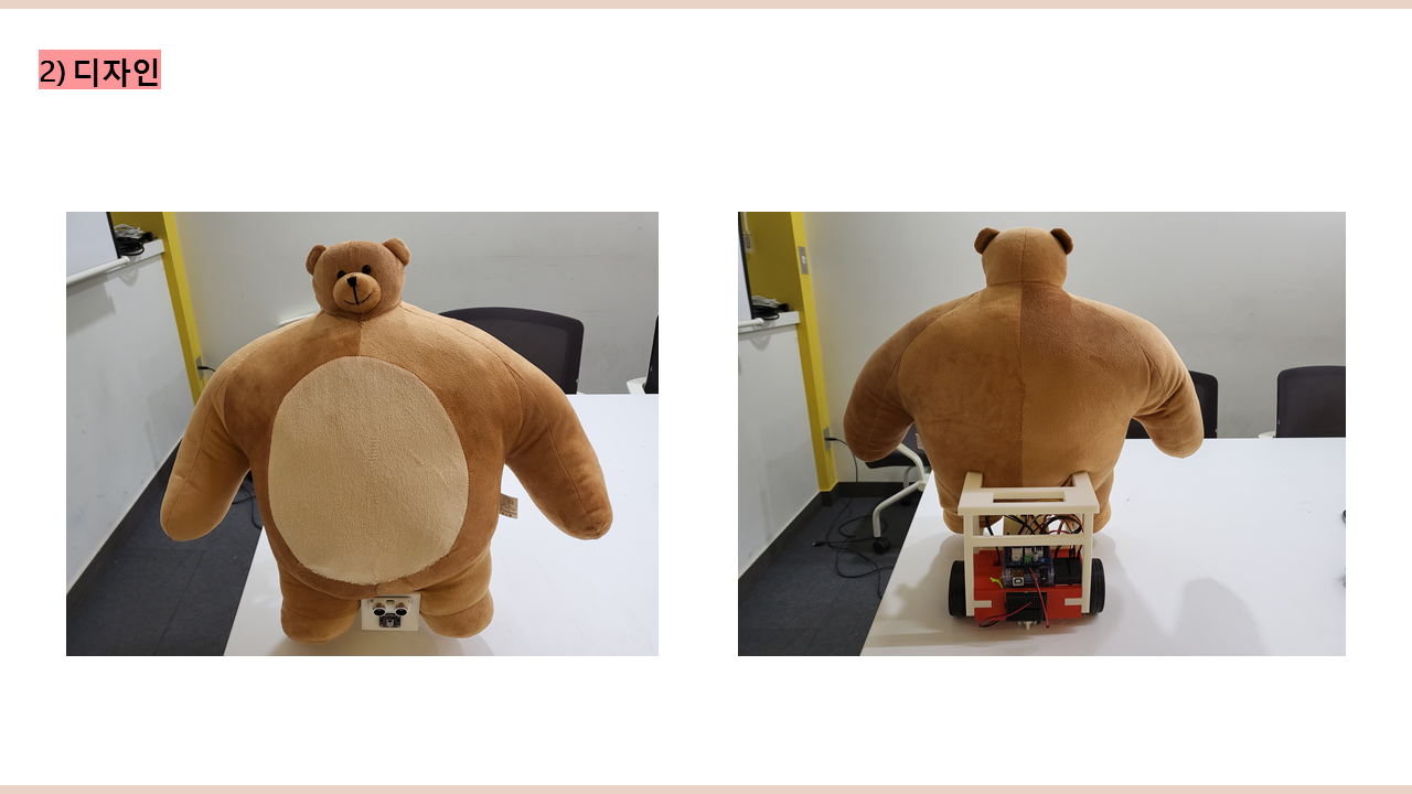 JAK3는 곰 인형이 트래킹 로봇 위에 앉아있는 형태로 디자인 했습니다. 저희 팀이 만들고 싶었던 JAK3는 물리적인 따뜻함과 따듯한 말을 동시에 하는 로봇이었습니다. 그러나 일반적으로 우리가 생각하는 로봇은 따뜻함과 거리가 멀어 우리의 의도를 JAK3가 잘 드러낼 수 있을지 의문이었습니다. 그래서 저희는 어떤 부분에서 인간이 따듯함을 느낄 수 있을 지에 대해 고민하던 중 가장 인간 친화적이고 포근함을 상징할 수 있는 것이 바로 곰과 같은 동물이라는 결론을 내렸고, JAK3의 외관을 곰의 형태를 정했습니다.