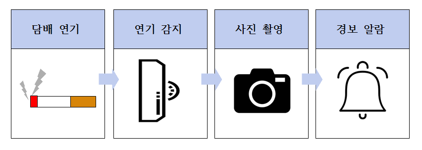 흡연 감지 카메라 배경 국민 건강 증진법 9조 4항과 시행규칙에 따르면 공중이 이용하는 시설의 소유자·점유자 또는 관리자는 해당 시설의 전체를 금연구역으로 지정하고 금연구역을 알리는 표지를 설치해야 한다. 여기서 말하는 공중이 이용하는 시설은 국회의 청사, 정부 및 지방단치단체의 청사, 공공기관의 청사, 어린이집, 공연가, 관광 숙박업소, 사회복지시설 등등 지정되어 있다. 또한 국민 건강 증진법 9조 8항과 34조 3항에 따르면 누구든지 지정된 금연구역에서 흡연을 해서는 안되고 금연구역에서 흡연한 자에게는 10만원 이하의 과태료가 부과된다. 하지만 금연구역에서 흡연한 자를 적발하기에는 많은 어려움이 있다.