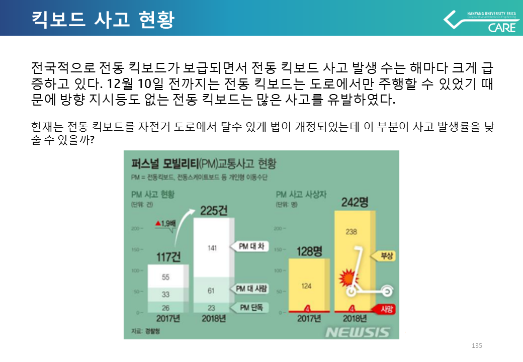 전동 킥보드 사용자들이 증가함에 따라 사고 발생률이 높아졌지만 헬멧을 착용함으로써 사고 발생률도 낮춤