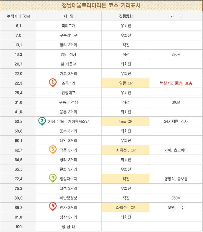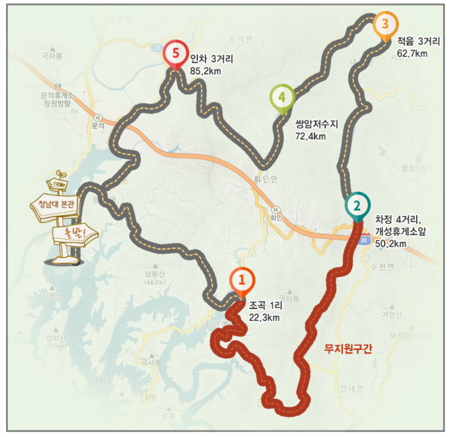 -. 전구간 동호회지원 할 수 없음(50.2km 차정 4거리에서만 지원가능).