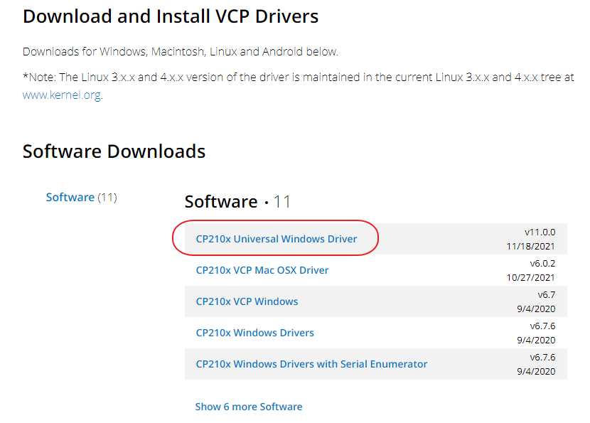 1. Silabs CP2104 driver 를 설치해주세요. 제가 사용하는 환경에서는 설치 안 했고(이미 설치되어 있다고 판단) - 링크를 가셔서 download 탭을 누르시고 맨 위에 있는 드라이버면 됩니다. 다른 프로그램에서도 혹시 필요하시면 이 드라이버를 설치하세요. 아래 이미지 참고.